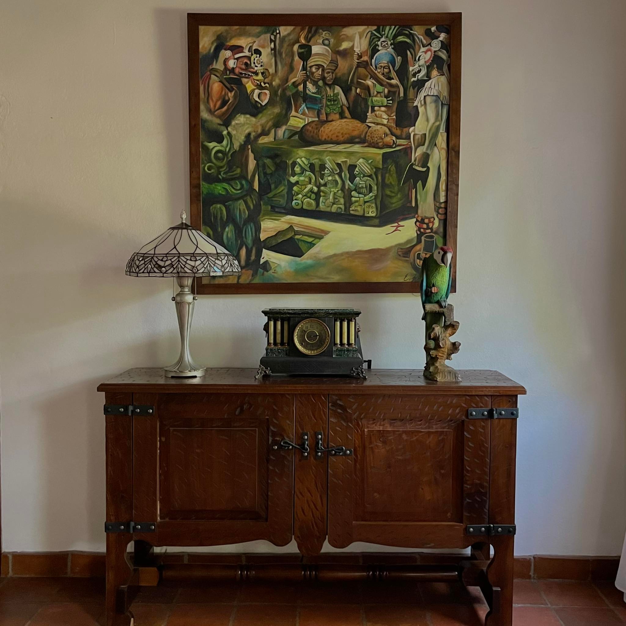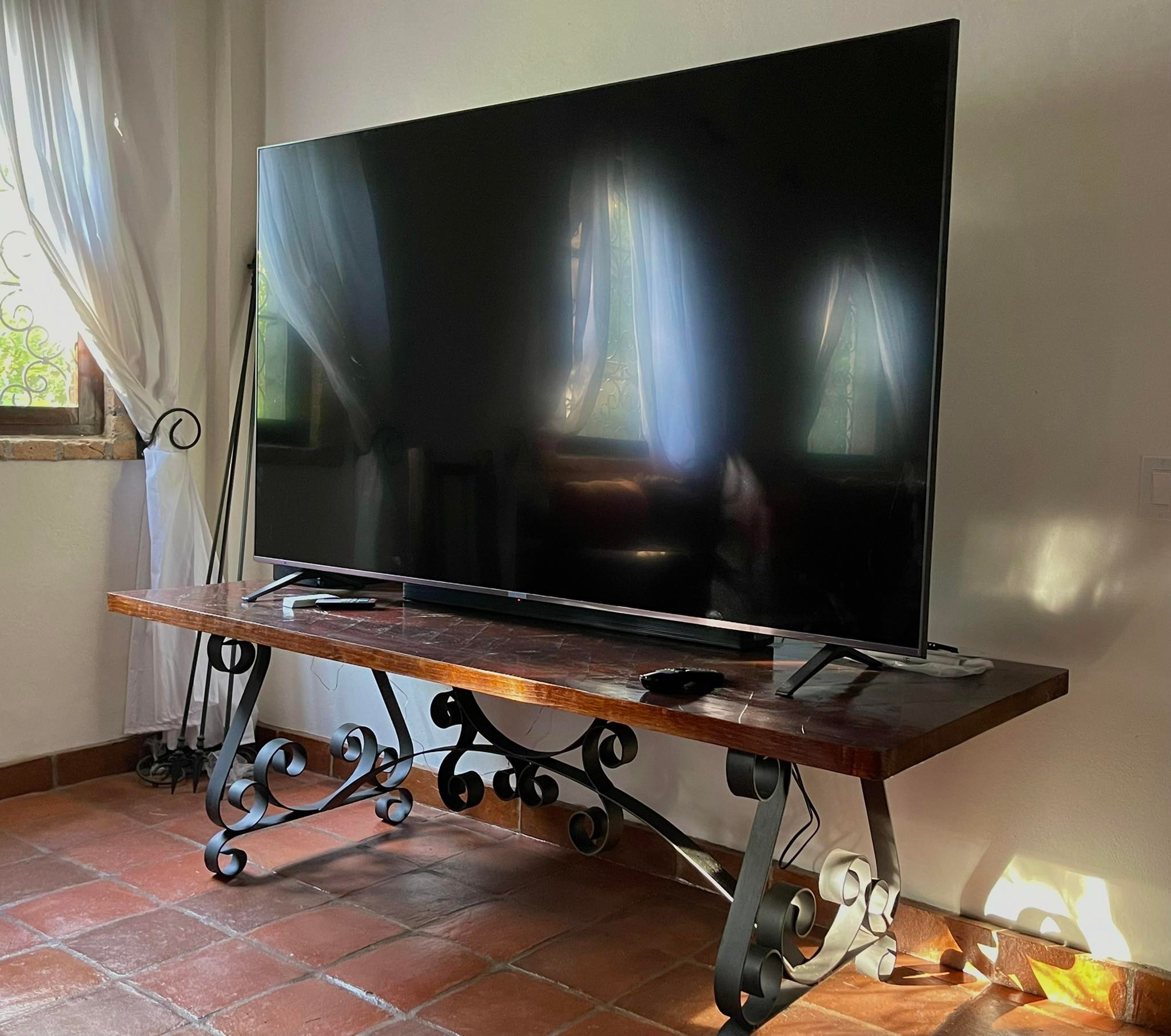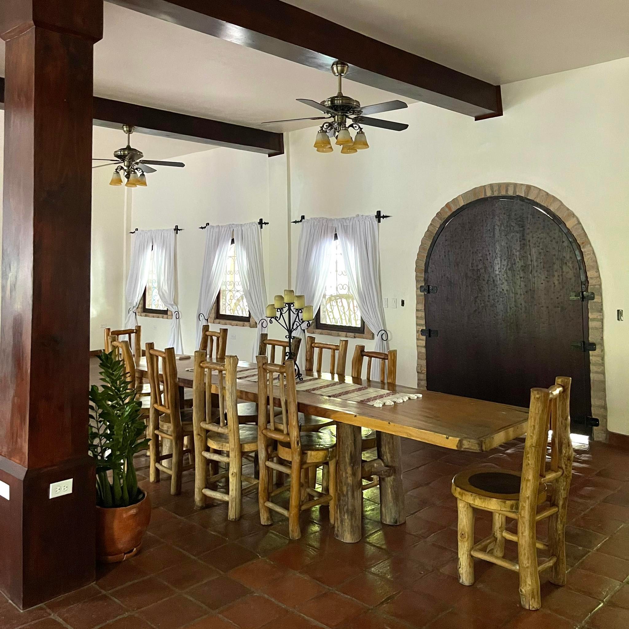 The Alamo consists of two floors. Once you step into the first floor of The Alamo, common area (hanging out spot), you enter the well-designed diversion area. This setting consists of all the entertainment you will need during your stay. From Spanish Colonial antiques to the well-arranged furniture, you will forget you are in the 21st century. This area includes an 82-inch tv with soundbar speakers, ideal for watching sports games or movies. Excellent area to work remotely if you need high-speed Wi-Fi.